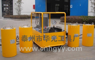 华光设计生产的TQF超高压同步千斤顶,广泛适用于大型建筑工程设备,构件的同步起顶、调整及铁路、公路、桥梁工程的架设。设计有安全保压装置,内置卸压阀防止过载,保护千斤顶以利于安全操作。并设计多组同步分配阀,可随时控制千斤顶同步升与降。该装置的连接采用的是高压胶管和螺纹接头连接,具有使用安全便捷的优点,并克服传统快速接头漏油缺点.